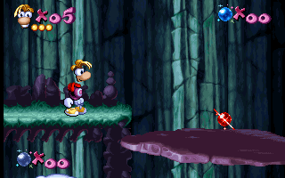 it to swing over to the small rock ledge on the left wall of the cavern.