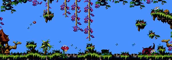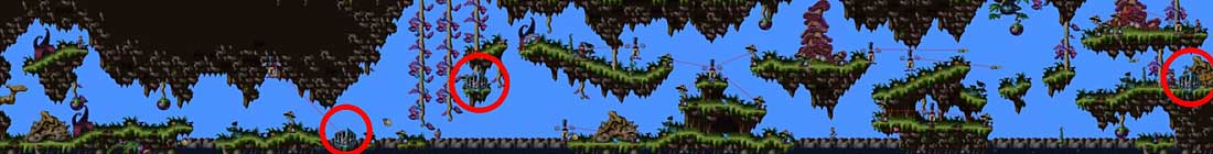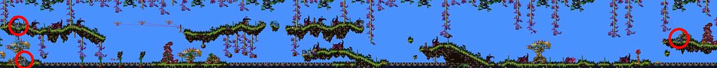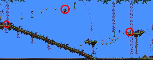 jump to the right to reach the vine. Climb the vine and jump to the vine to your