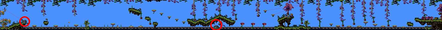 hanging at the top of the screen (just past the place where the explorers suddenly appear