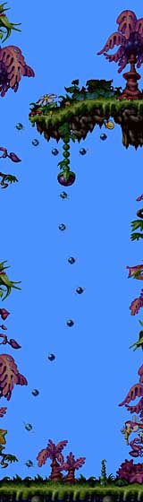 hanging on a vine and let it bounce down the hill towards the left. Jump on top of the bouncing