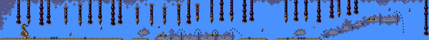 back on the first cloud and go up to the elf to return to normal size. Jump to the right of the